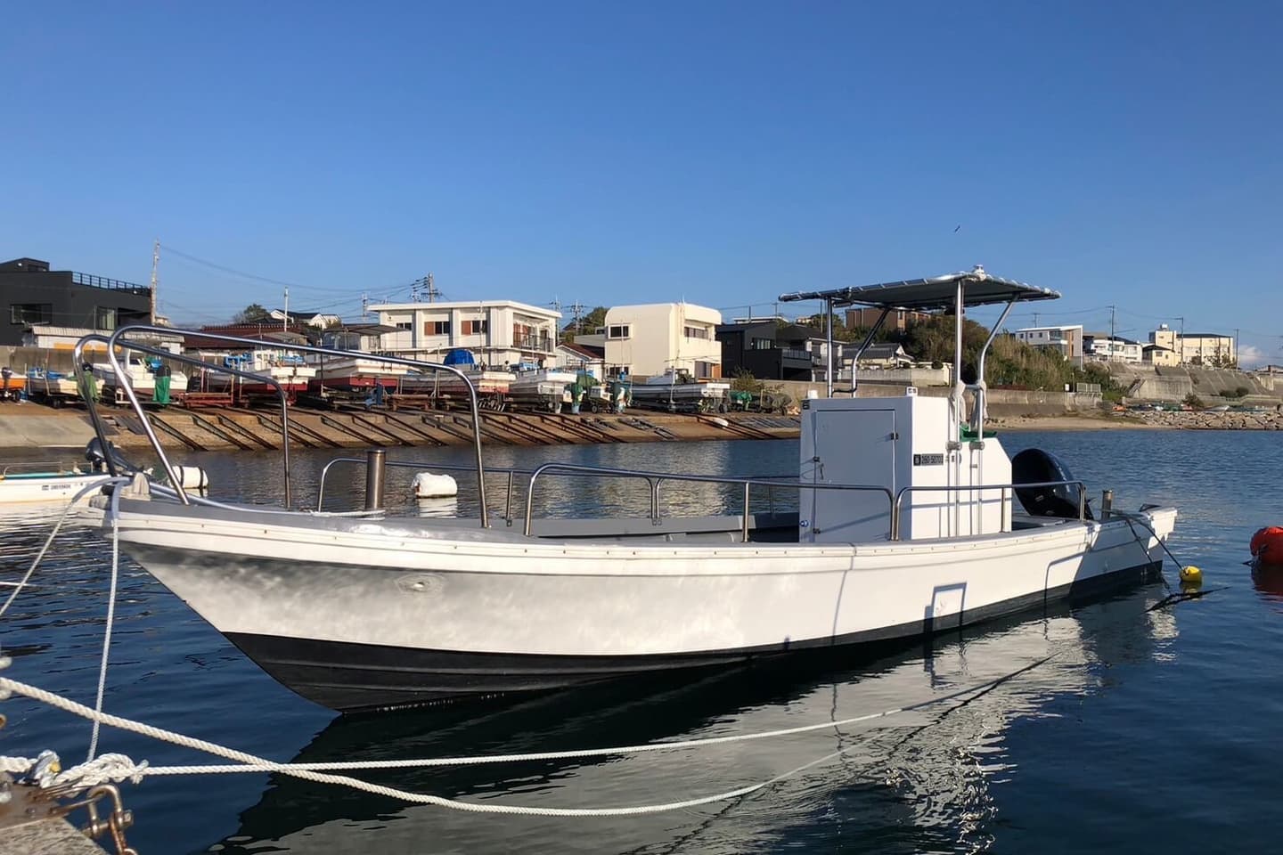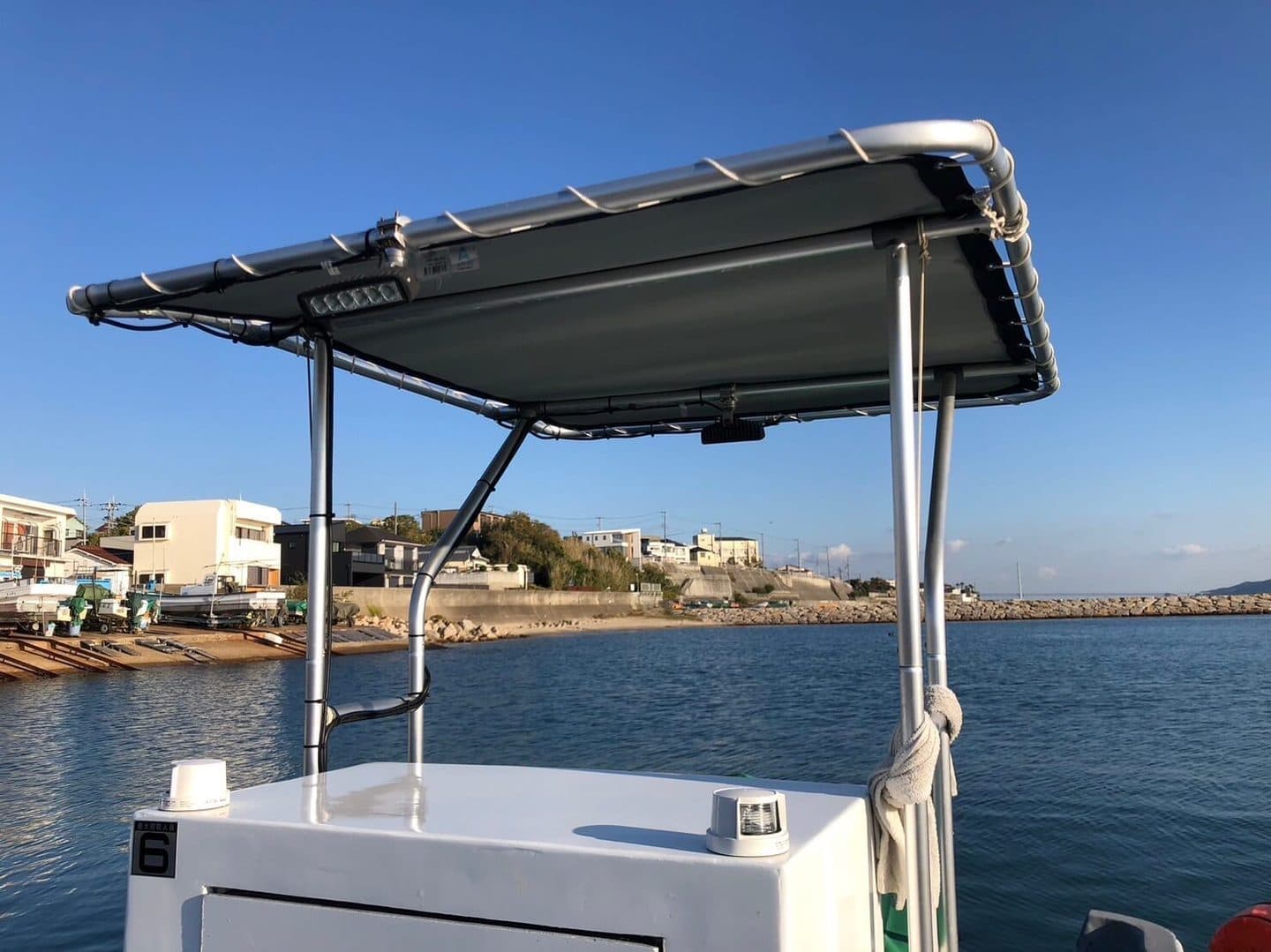手すり、バウレール付きで釣り中も安全